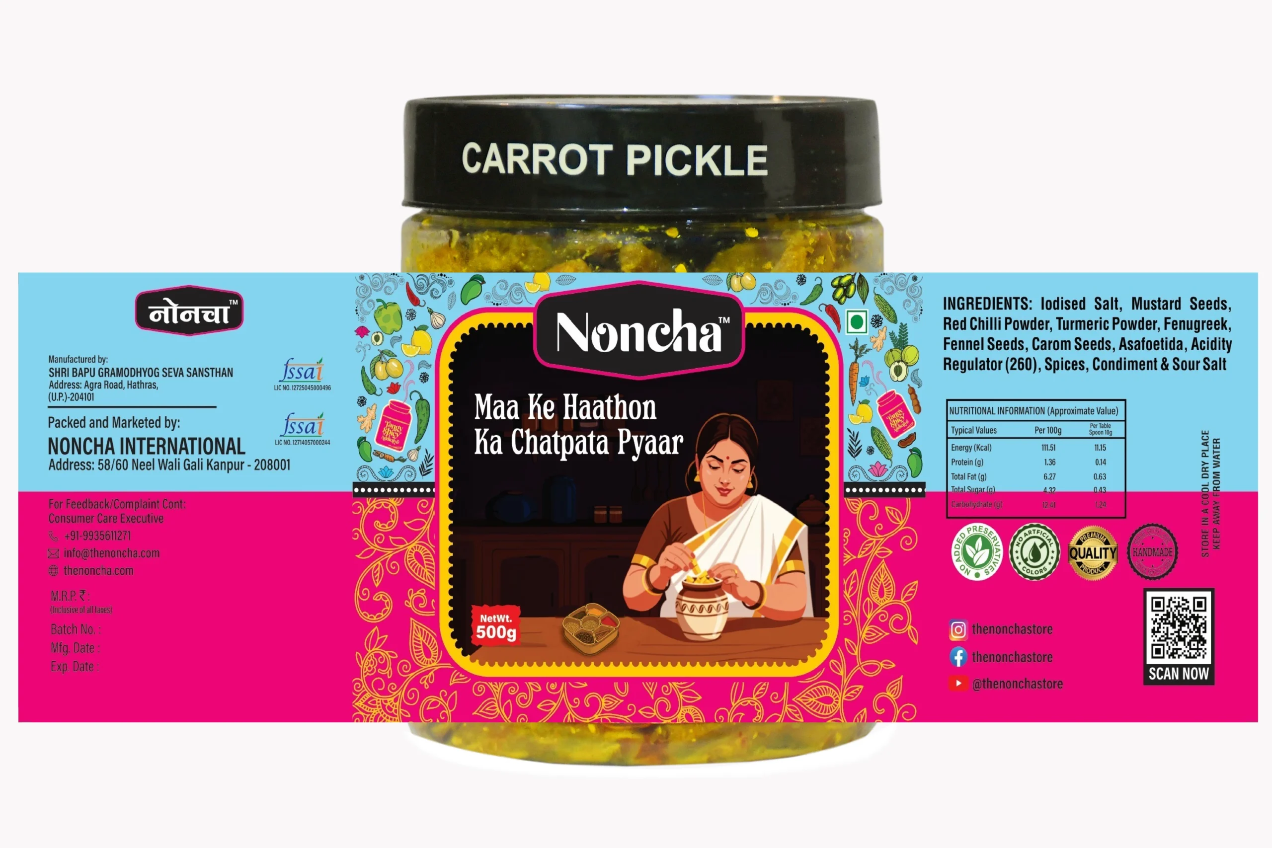 Add colour, crunch, and authentic Indian flavor to your meals with our Carrot Pickle, made from fresh, juicy carrots and a blend of traditional aromatic spices. Each bite bursts with the perfect balance of tanginess, spice, and earthy sweetness, reminding you of homemade pickles prepared in every Indian kitchen.