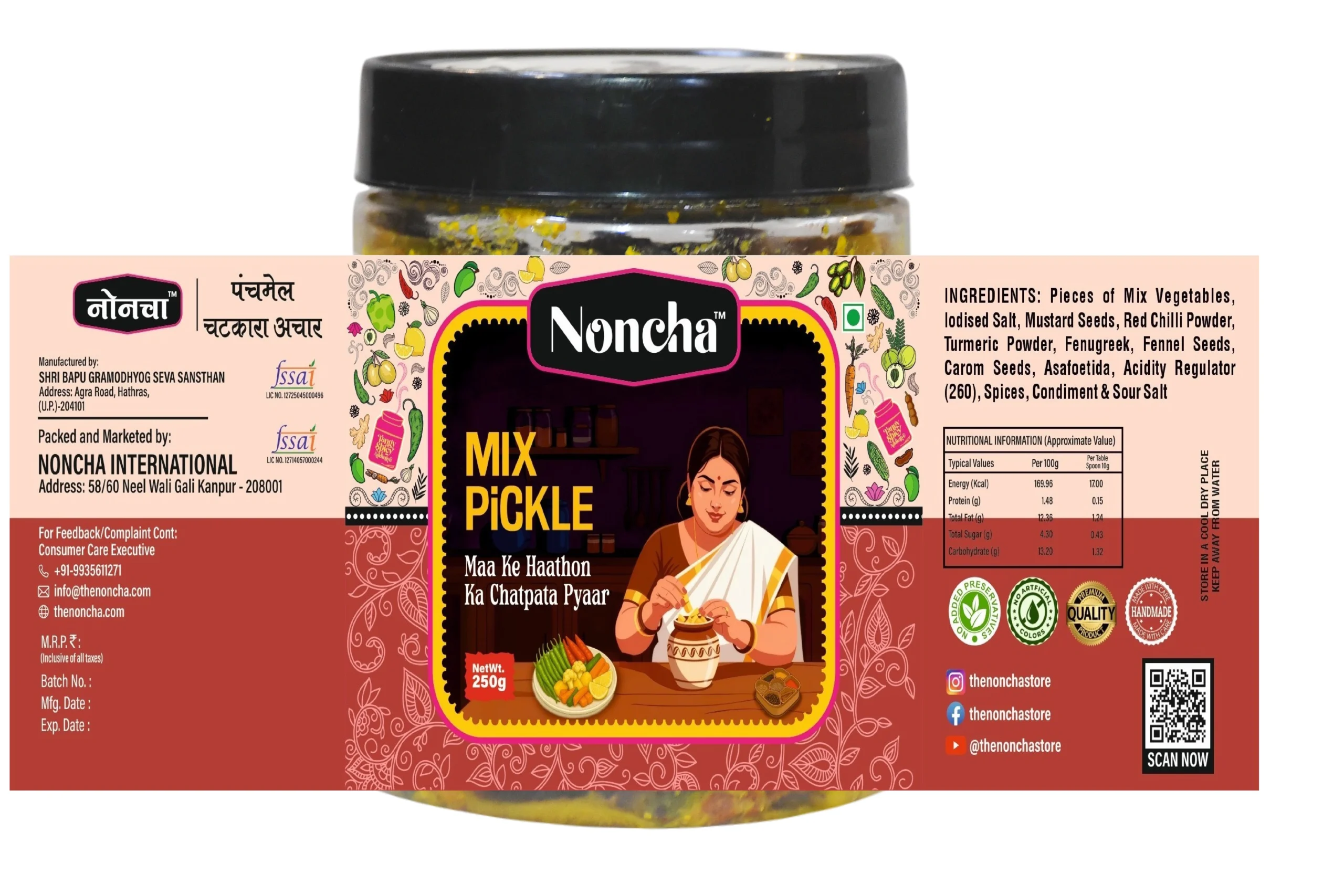 Every jar we craft at Noncha is made with care, patience, and the warmth of Indian kitchens. Your support means more than words—it helps us keep the authentic taste of tradition alive. We hope every bite brings you joy and nostalgia. With heartfelt gratitude from our family to yours. Thank you for choosing Noncha.