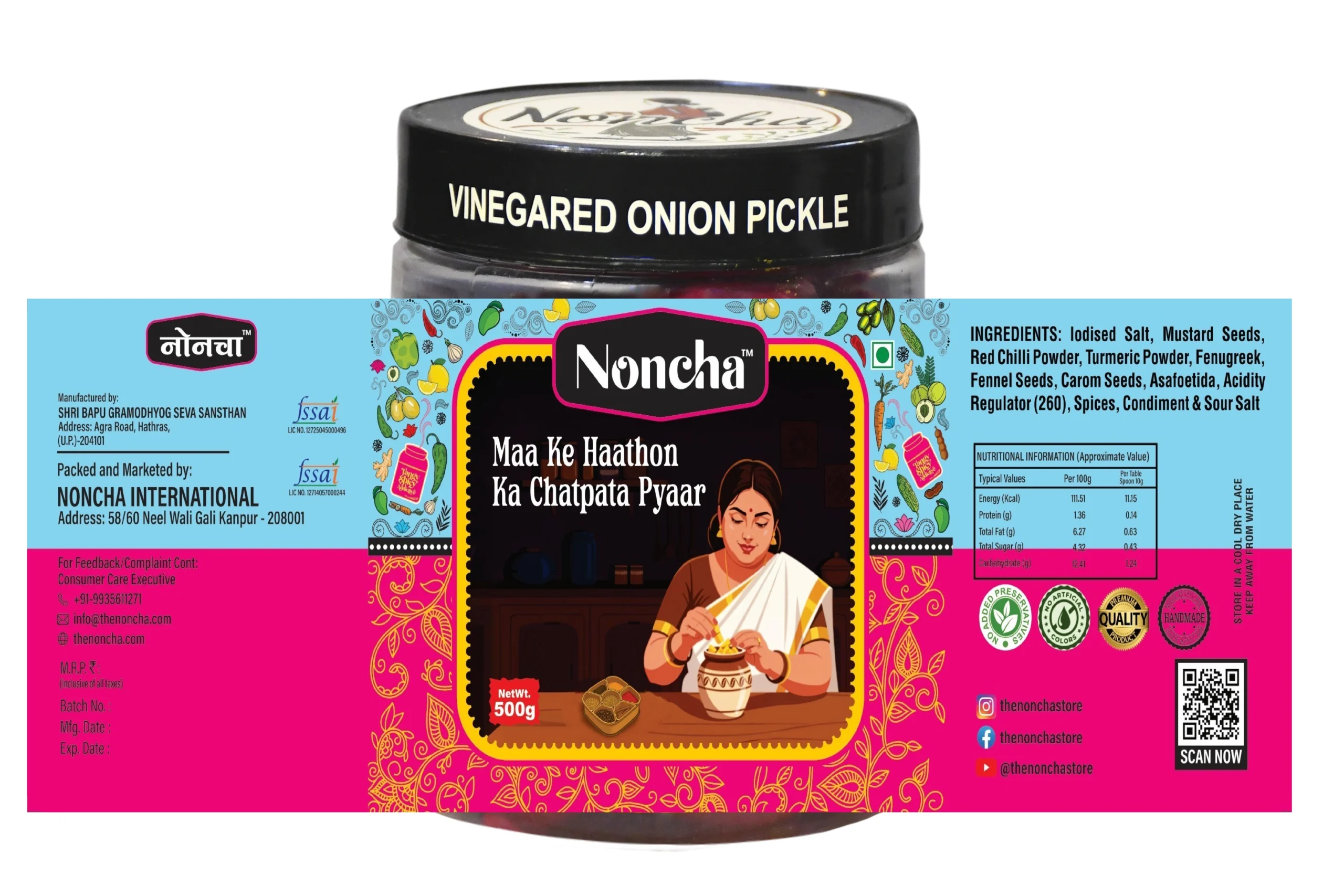 Prepared with handpicked fresh onions, slow-cooked in mustard oil, and blended with aromatic spices like mustard seeds, fenugreek, turmeric, and cumin, this pickle delivers a burst of flavor in every bite. The tanginess of vinegar enhances the sweetness of onions, creating a unique taste that complements rice, rotis, sandwiches, and snacks alike.